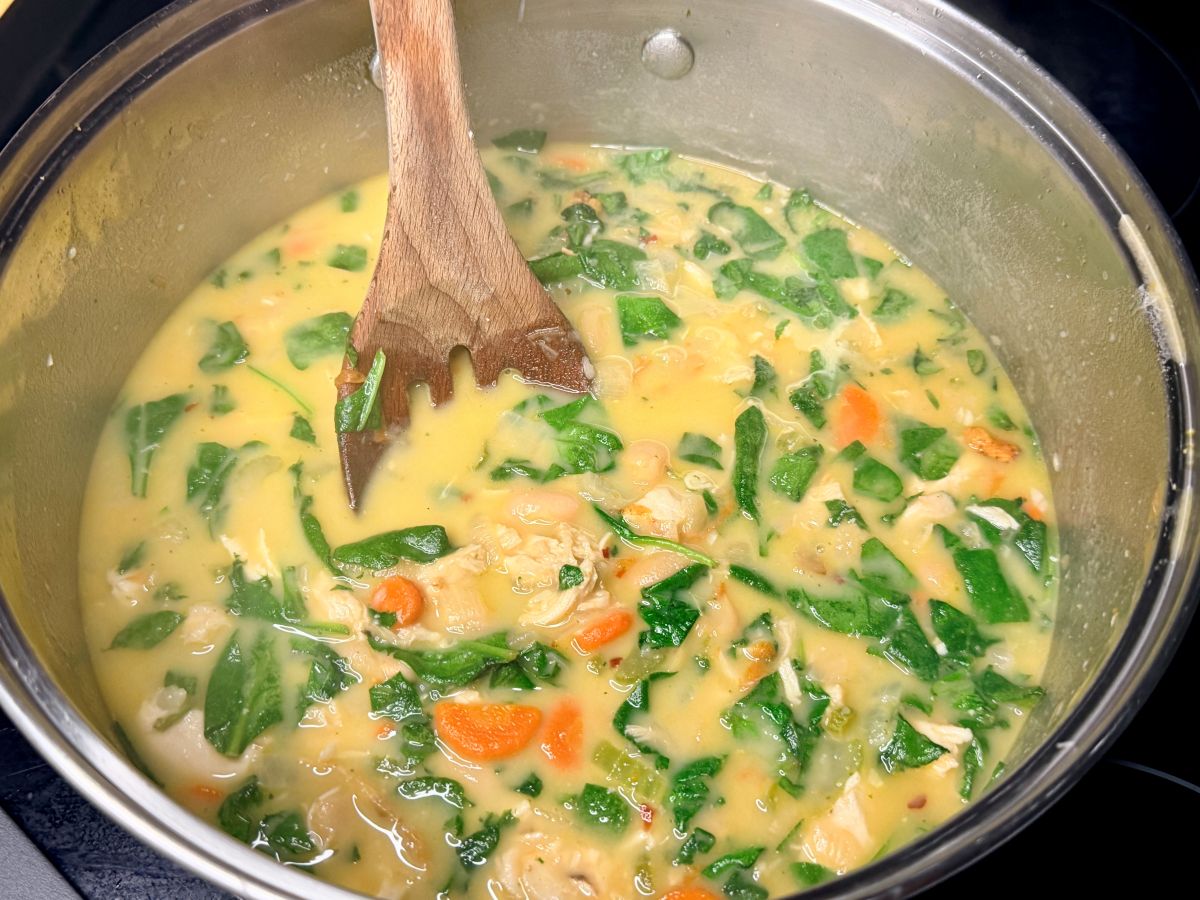 - White beans- Cannellini or Great Northern beans work well here. They soften into the broth and give it a little more body without needing flour or a roux.