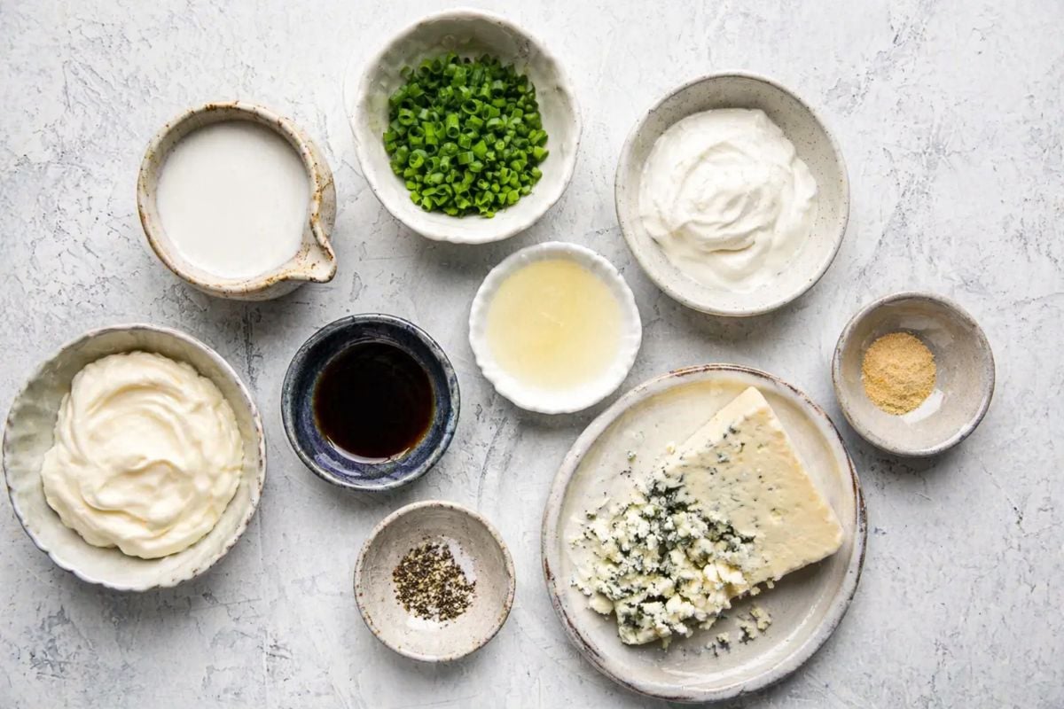 You can use any blue cheese you like. Milder options like a young Gorgonzola or Roquefort blend in smoothly, while stronger varieties will give the dressing a more pronounced flavor.