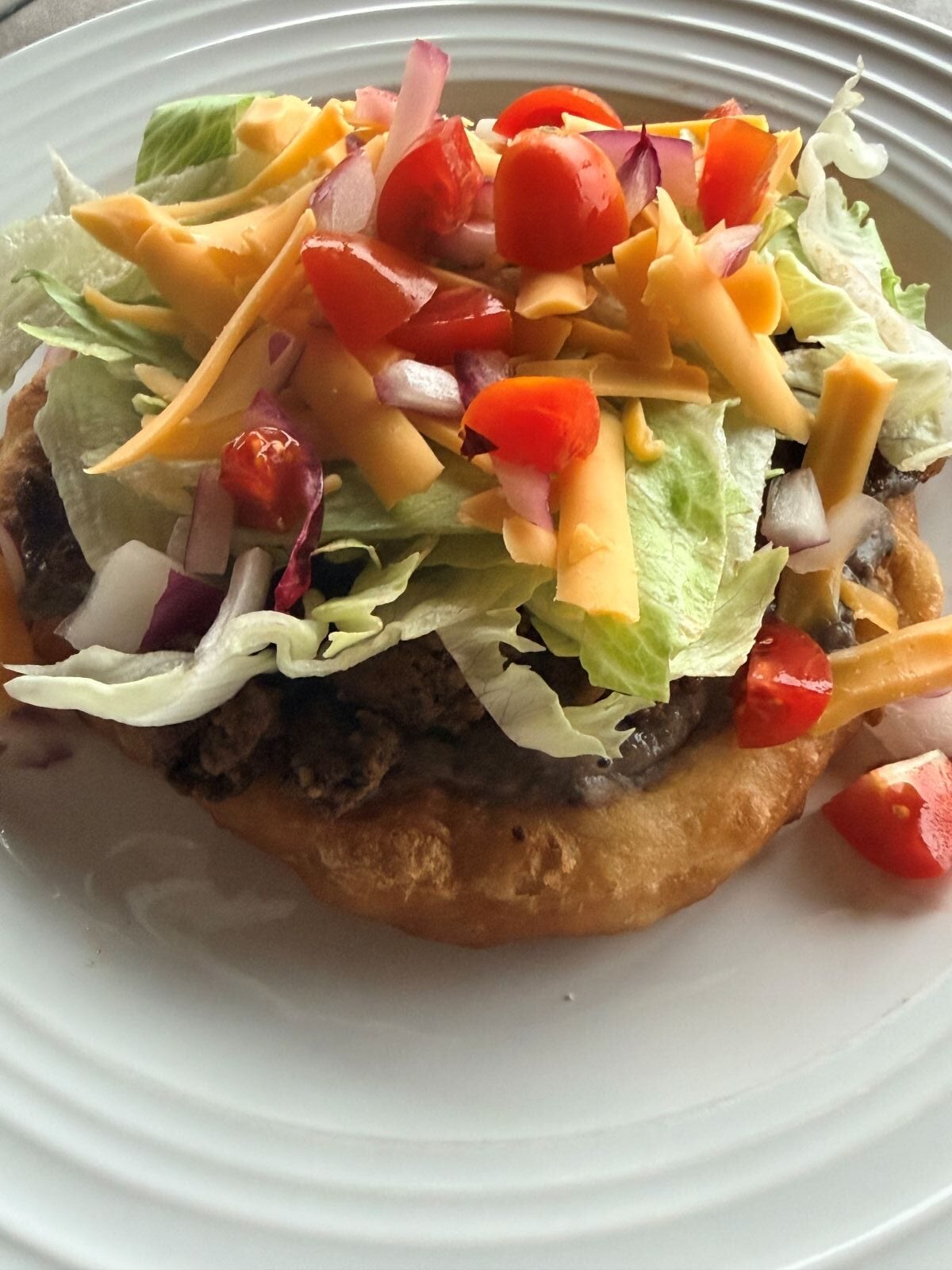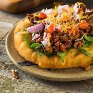 You'll find them all over-roadside stands, state fairs, little local spots-served on warm fry bread piled high with seasoned meat, beans, and fresh toppings. It's the kind of meal you eat with your hands, a little messy, usually outside.