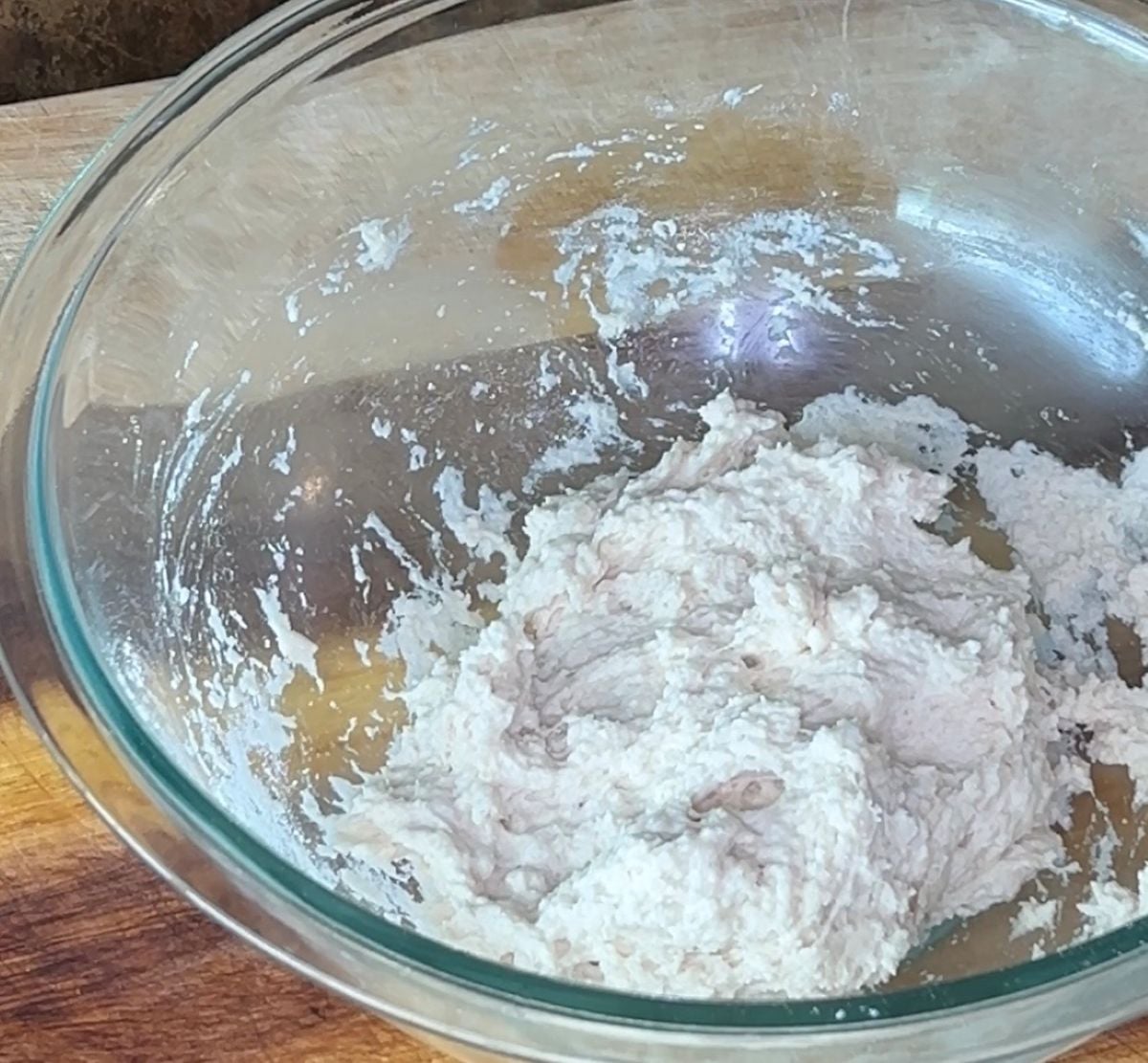- Make a well in the center and add warm water a little at a time, mixing with your hands until a soft, slightly tacky dough forms. You may not need all the water.