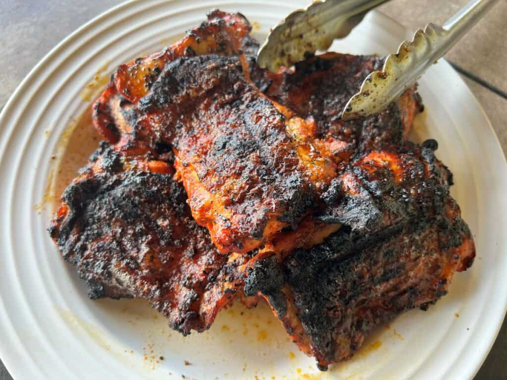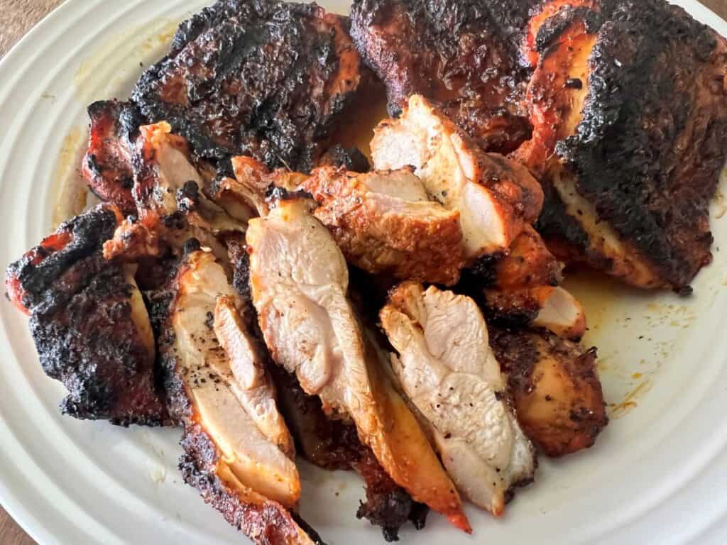 With each bite, you'll experience the smoky essence of char from the grill, followed by tender, juicy chicken infused with layers of the delicious marinade.