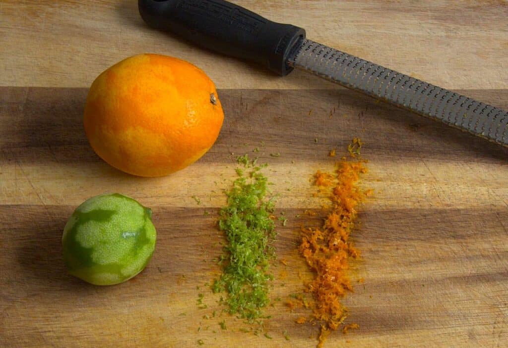 - Using a microplane zest the orange and lime before cutting them in half and squeezing the juice into the bowl of a blender or small food processor.