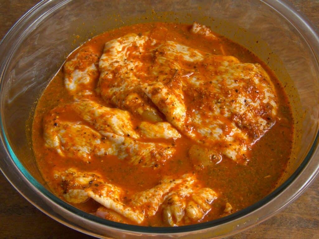 - Dry chicken with paper towels to remove any excess moisture and then place it in a large bowl. Pour the marinade over the chicken. Make sure all of the chicken pieces are completely coated and then cover the bowl with plastic wrap. Place in the refrigerator and marinate for 2- 4 hours. Alternatively, you could place everything in a ziplock bag.