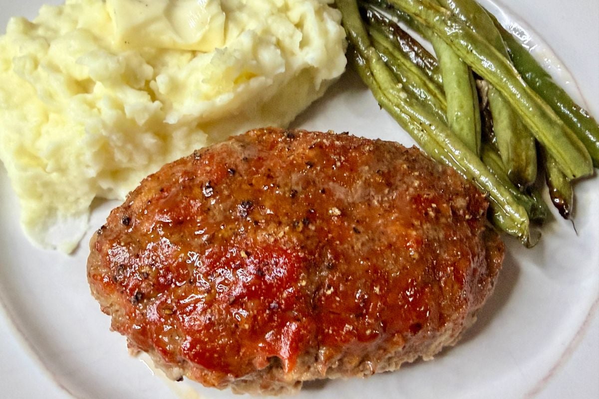 Mini Meatloaf for Two with Mashed Potatoes and Green Beans