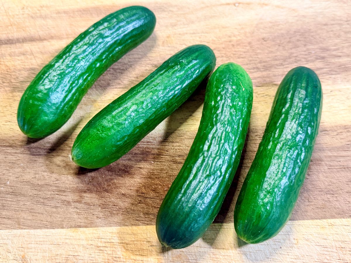 - Mini cucumbers - Crisp and refreshing, with less water than standard cucumbers, so they stay crunchy after marinating